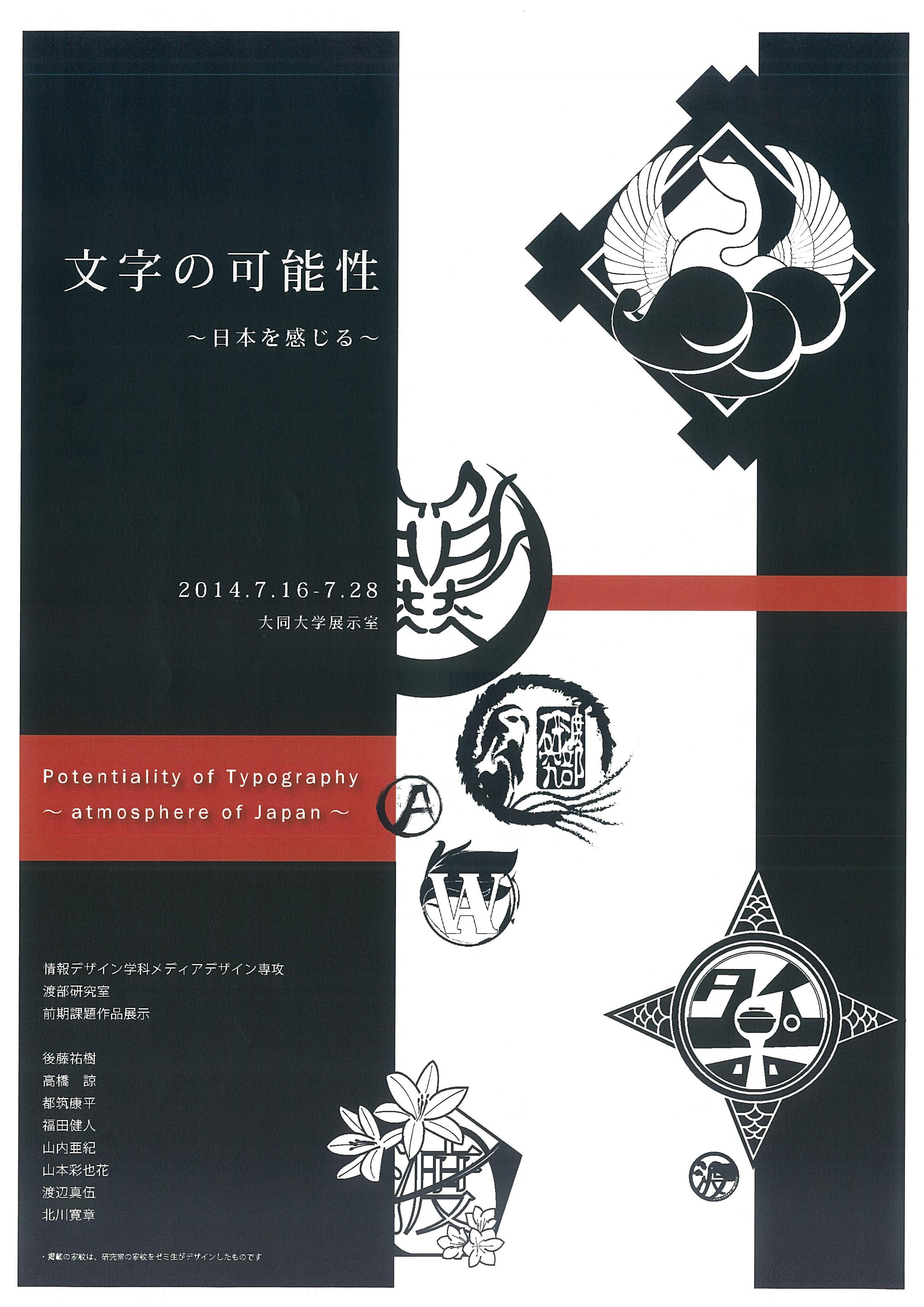 情報学部 情報デザイン学科 メディアデザイン専攻 渡部裕子研究室の学生8人が、本学B棟1階展示室で前期の課題作品を展示した「文字の可能性~日本を感じる~」を開催しています。