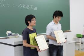 残念ながら、今年度は商品化に該当する作品(最優秀賞)はなかったものの、2つのアイデアが特別賞に選ばれ、同社の山田専務から賞状が手渡されました。