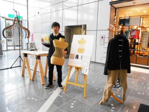 熊崎さんの「コーディネートの確認ができるハンガー」は、衣服のコーディネートがしやすいトルソー型の立体ハンガーの提案。桝田さん・南谷さんの「空間の用途に合わせて変化可能な家具」は、製造ラインでは一般的に廃棄されてしまう杉の集成材を利用した子供向けのユニット型収納家具の提案。審査中、今後に向けてのアドバイスなどもいただき、充実した時間となりました。