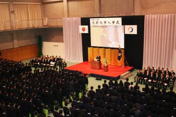 式では、澤岡昭学長が、「自分にとって何が好きなのか、何をやりたいのか、本当に何が得意なのかを見つけてください。これが分かり、得意なことを中心にした生活を始めると毎日が楽しくなり、自信がついてくるものです。これからの学生生活を勉強、研究、スポーツ、サークル活動、友人との交流を通じて、元気で愉快な思い出に残る学生生活をつくりだすことを心より願っています」とエールを送りました。