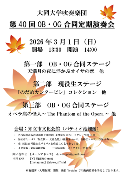 3月開催予定の「第40回OB・OG合同定期演奏会」に向けては、