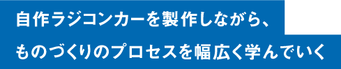 川福研究室の大きな特長のひとつが、机上計算やソフト上での数値シミュレーションだけでなく、実際に無線駆動車両(ラジコンカー)を用いて、解析や検証実験を行うこと。学生たちは自らが設計やプログラムをした電子制御部品を自作ラジコンカーに組み込み、車両バネ上※の制振制御など、それぞれの課題に取り組んでいきます。研究を通して、電気電子の知識だけでなく、ものづくりに必要となる力を幅広く磨いていくことができるのです。「自動車と聞くと電気電子工学よりも、機械工学などの分野をイメージする人が多いかもしれません。私も昔はそうでした。もともとはロケットやロボットなどにも興味があり、学生時代は機械工学を専攻していたのです。しかし、現代のクルマはたとえガソリン車であってもバッテリー(電気)やたくさんの電子部品がなければ動きません。機械も電気電子の知識も両方大切なのです。現代のものづくりは、ほかにもさまざまな分野の知識や技術が結集されています。みなさんには広い視野をもって、ものづくりのプロセスを幅広く学んでほしいと思っています」