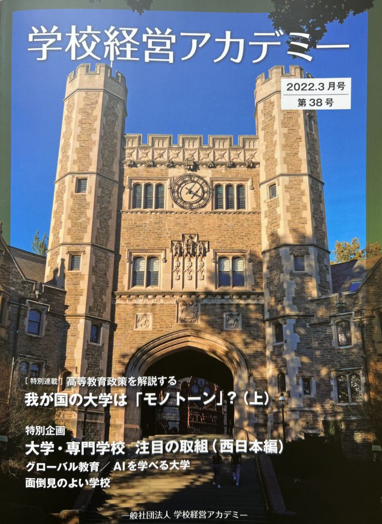 2022.04.07 お知らせ 情報誌「学校経営アカデミー」に新校舎X(クロス)棟が掲載されました 2022年3月発行の情報誌「学校経営アカデミー」第38号にて、新校舎X(クロス)棟が紹介されました。 大学の充実した施設を紹介する写真特集ページにて、X棟が吹き抜けのスタジオを中心に紹介されています。 この記事をシェアする 前の記事 次の記事 一覧へ戻る