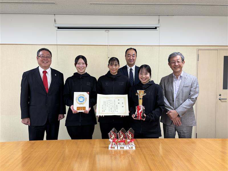 学長室で、理事長・学長に東海学生秋季リーグ戦優勝報告をしました。