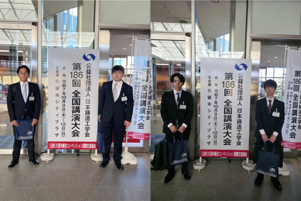 日本鋳造工学会 第186回全国講演大会で研究発表を行いました/加藤大翔さん、瀬尾優揮さん、高山亮成さん、三好尚輝さん