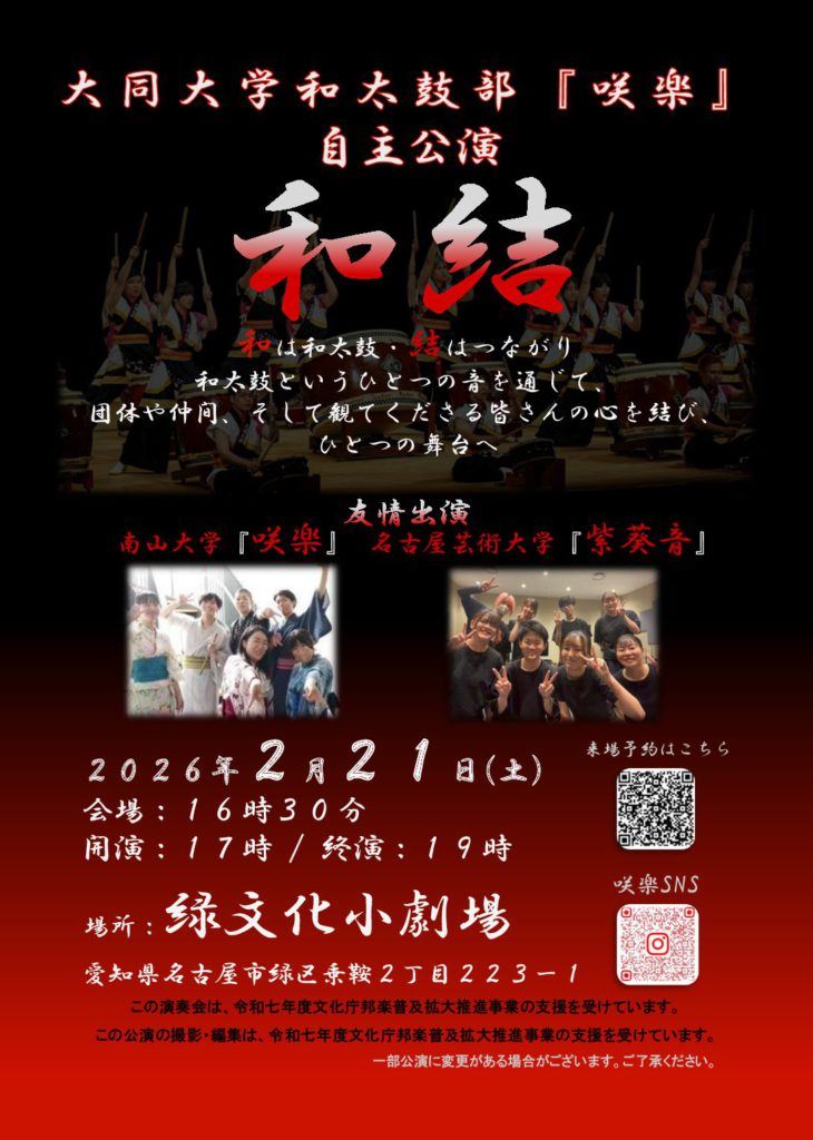 和太鼓部『咲楽』 2026年度 自主公演開催します!