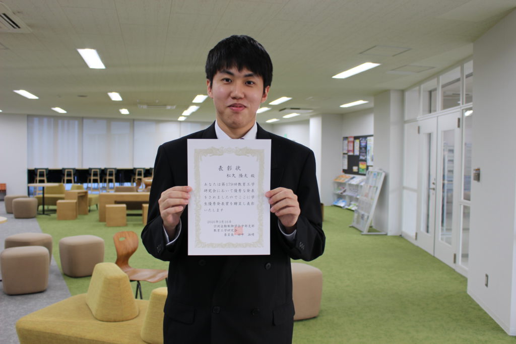 計測自動制御学会中部支部第179回 教育工学研究会にて学生優秀発表賞を受賞しました/松久隆太さん