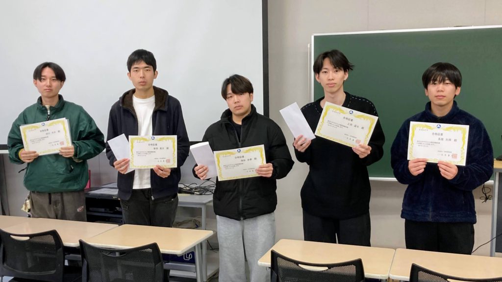 2025年12月10日(水)、情報学部 総合情報学科の学生12名がマネジメント検定Ⅲ級を受験し、3年生の神野翔汰さん、2年生の上田遥斗さん、田口大介さん、長屋光輝さん、西田歩夢さん、新田晃大さんが見事合格しました!