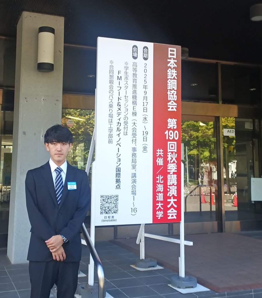 大学院 修士課程 機械工学専攻の福冨さん(2025年度修了)が、2025年9月に開催された日本鉄鋼協会で研究発表を行いました。