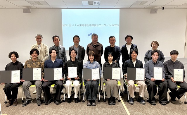 2026年4月11日(土)、公益社団法人日本建築家協会東海支部が主催する『第31回JIA東海学生卒業設計コンクール2026』の二次審査会が行われ、建築学部 建築学科 建築専攻 インテリアデザイン専攻から3名の卒業生が入賞・入選する結果となりました。