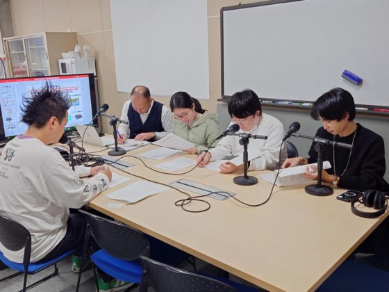 収録は本学で行われ、服部教授、宮本准教授、萩原教授、川福教授とともに学生も出演しました。
