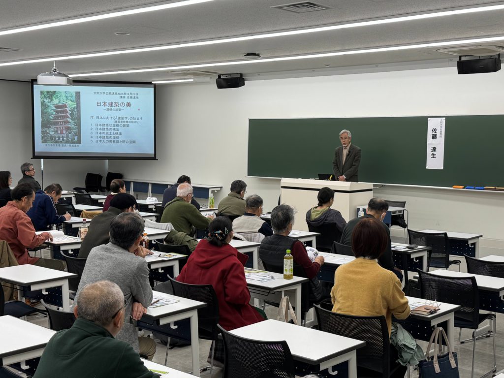 当日は、佐藤達生名誉教授が「日本建築の美」をテーマに講演を行いました。